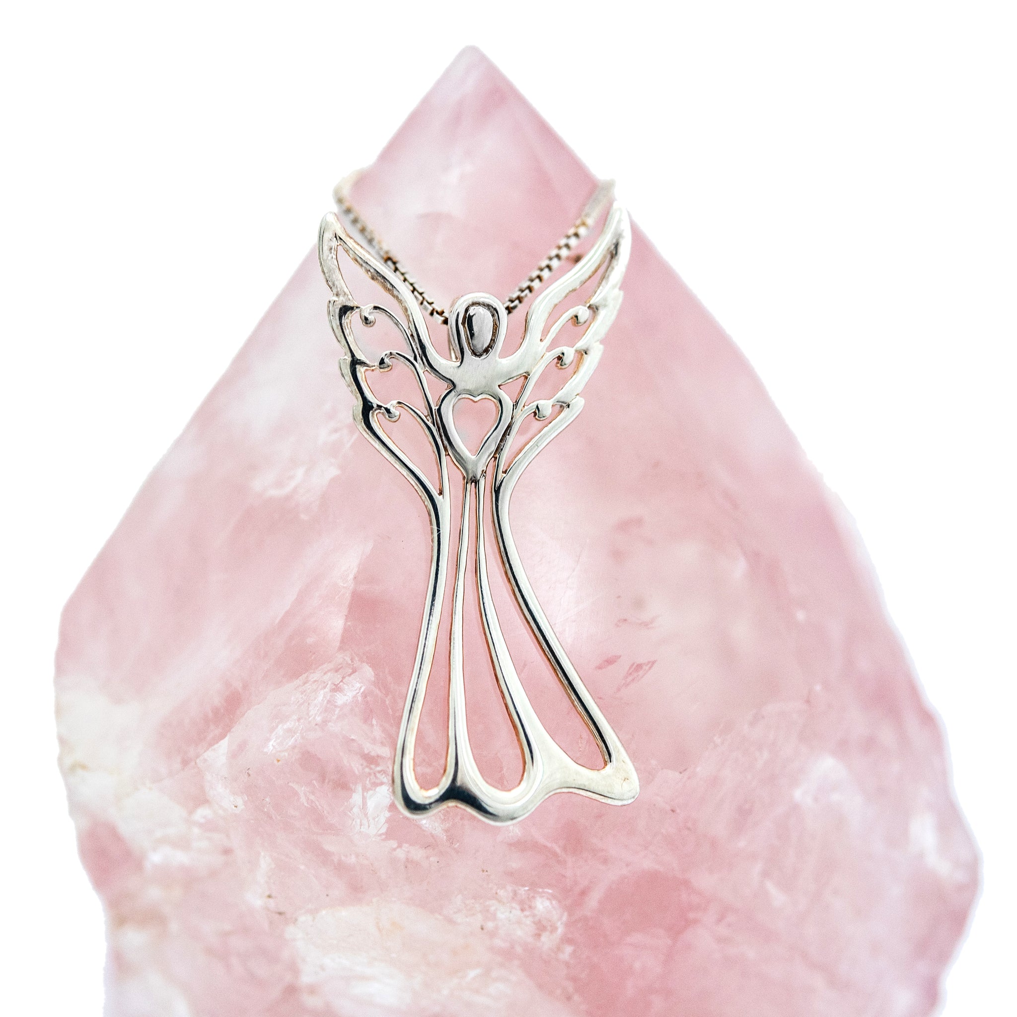 Angel Dimensions: The angel pendant measures 1 1/2 inches by 3/4 inch, offering a noticeable yet delicate presence.